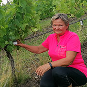 beim Besuch ihres Weinstocks in der Reihe 57 mit der Weinstocknummer