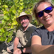 beim Besuch ihrer Weinstöcke in der Reihe 55 mit der Weinstocknummer
